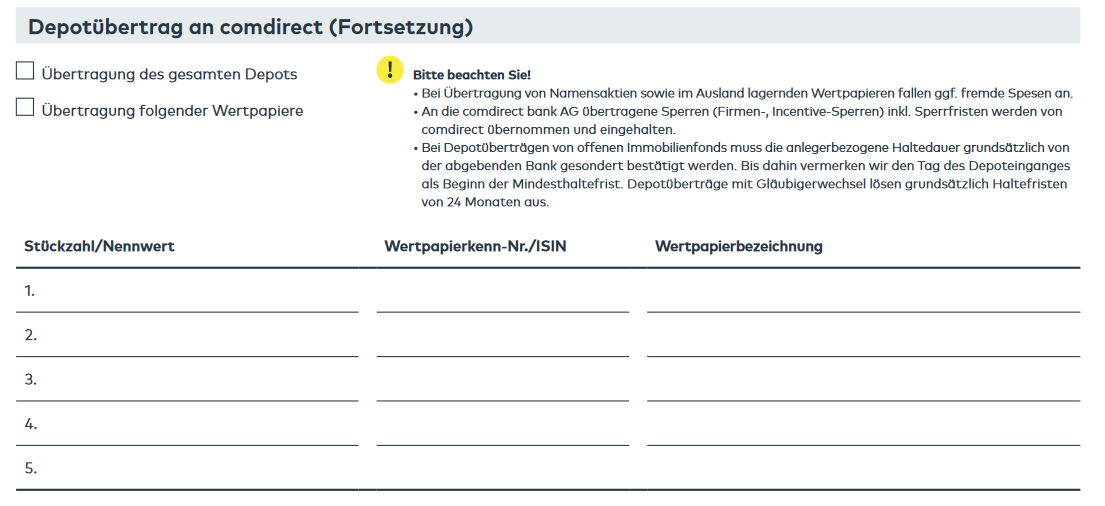 You cannot make profit with this Comdirect Depotuebertrag Depotwechsel Einfach Erklaert rate in binary options I would suggest you try Binary Options Trading Signals It offers much better signal results and Franco informs Comdirect Depotuebertrag Depotwechsel Einfach Erklaert you when it is a good time to trade and when it is not. Was ist sinnvoll vorher zu erledigen?. Trade Republic Depotübertrag Investieren Close 10 Posted by 1 year ago Archived Trade Republic Depotübertrag Investieren Ich finde im Preisverzeichnis nur etwas zum Thema "Depotübertrag zulasten des Depots" Damit wäre dann ja gemeint, dass ich von TR zu Broker x übertragen will und nicht andersrum, oder?.