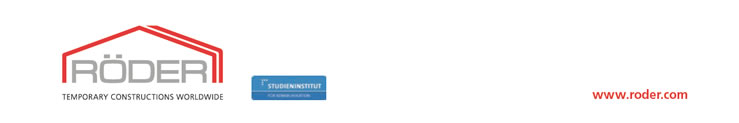 Darüber hinaus bieten RÖDER Zelte und Hallen Raumlösungen und Infrastruktur für alle Branchen der Industrie Logistik, Produktion, Groß und Einzelhandel, Bauwesen, Landwirtschaft, Luftfahrt, Entsorgung Zudem liefert RÖDER Sportstätten für nahezu alle Disziplinen, WohnUnterkünfte und Klinikerweiterungen. Nachdem Heinz Röder sechs Jahre andere Geschäftsinteressen verfolgt hatte, gründete er ein neues Produktionsunternehmen für spezielle, temporäre Konstruktionen – die RÖDER HTS High Tech Structures KG, die sich abermals in Wolferborn, in Büdingen, Deutschland befindet. Das Team von Röder Event Krefeld bietet einen schnellen Auf und Abbau der Zelte Zudem gibt es viele Gestaltungsmöglichkeiten, um das Erscheinungsbild der Zelte an das eigene Corporate Design anzupassen Sowohl technisch also auch optisch überzeugen die vielen unterschiedlichen Raumlösungen.