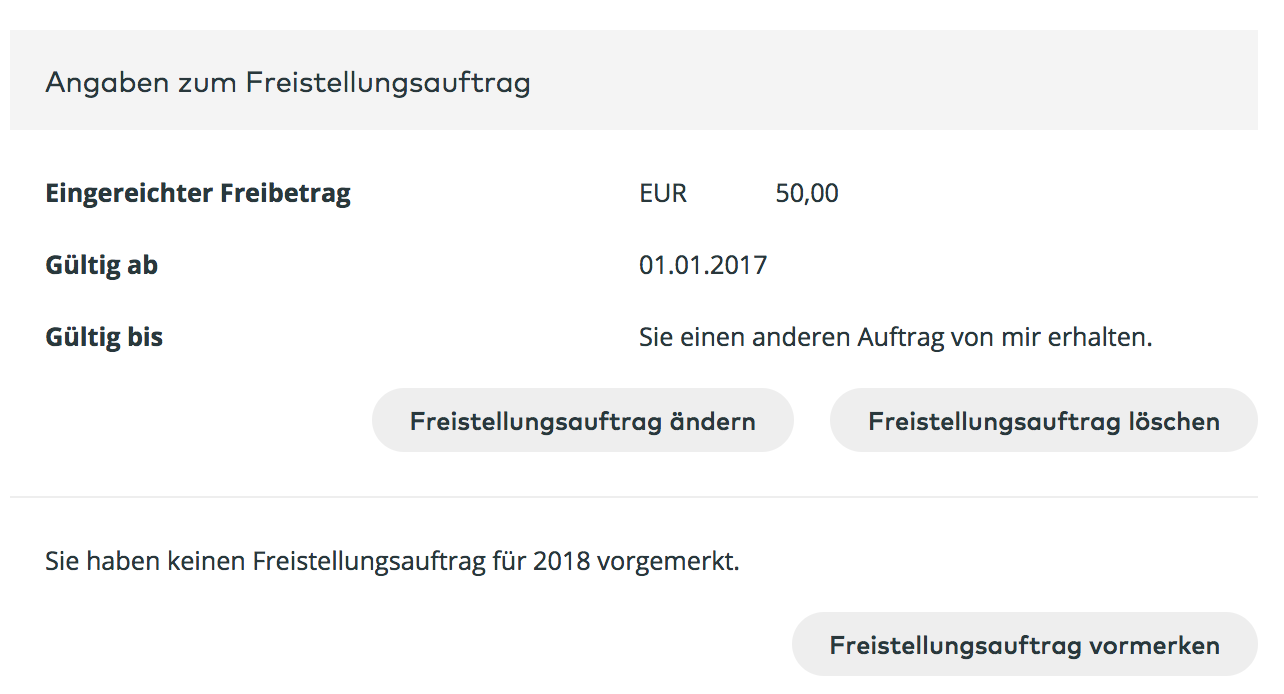 Der Freistellungsauftrag für Kapitalerträge (kurz FSA) stellt die Zinsen, die sich für eine Geldanlage ansammeln, bis zu einem bestimmten jährlichen Betrag steuerfrei Besteht kein Freistellungsauftrag, wird automatisch von allen anfallenden Zinserträgen ein Steuerabzug fällig – die Abgeltungssteuer. Insgesamt dürfen dabei jedoch 801/1602 Euro nicht überschritten werdenDie steuerliche Behandlung hängt letztlich. Bei Fragen können Sie auch gerne unsere Kundenbetreuer kontaktieren – per Telefon unter – 708 25 00, über unser Kontaktformular oder per LiveChat.