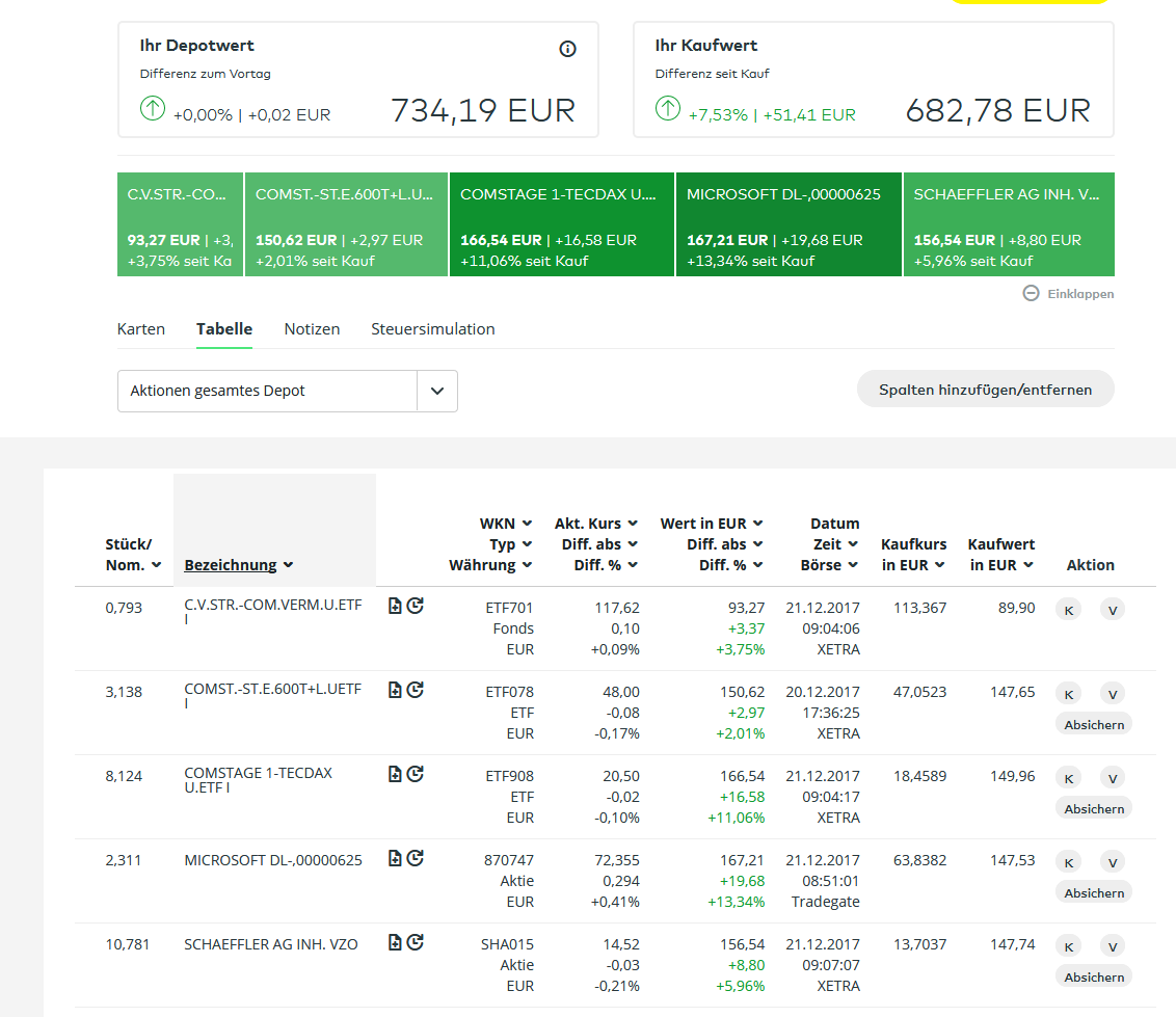 Junior Depot bei der Comdirect Schneller und guter Kundenservice per Telefon (anderen Kundenservice noch nicht benutzt) Breites Angebot, viele kostenlos besparbare ETFs, Benutzerfreundlichkeit, gutes Design und Zugang per Desktop und per App Leider bei kleinen Beträgen und Sparplänen relativ hohe Gebühren. Hallo zusammen ich habe 2 Fragen zum Junior Depot 1) Wir haben Bares Geld vom kleinen Daheim aus Geschenken von Verandten und Bekannten bei Geburt Dies wollen wir dann auf das Junior Depot drauf machen und ein ETF (FTSI All World) anlegen Jetzt habe ich gesehen, es gibt ein Referenzkonto auf d. Sparpläne können beim comdirect JuniorDepot ab 25 Euro abgeschlossen werden Dabei sind die Sparraten monatlich, alle 2 Monate oder quartalsweise möglich Ebenfalls können Einmalzahlungen wie zB die Anlage von Geburtstagegeld oder Weihnachtsgeld beim comdirect JuniorDepot vorgenommen werden.